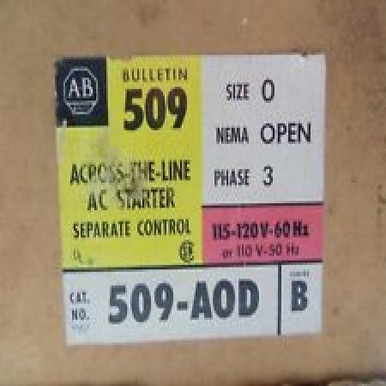 Allen Bradley 509-A0D Ac Starter 3 Phase Size 0 Series B 115-120 Volts NibAllen Bradley 509-A0D Ac Starter 3 Phase Size 0 Series B 115-120 Volts Nib